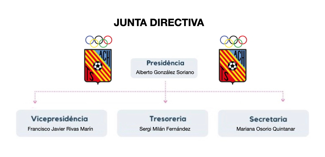 Muestra la composición actual del equipo directivo y las áreas que integran la gestión del ATC Hospitalense, reflejando la distribución de responsabilidades y el trabajo coordinado entre las distintas secciones.